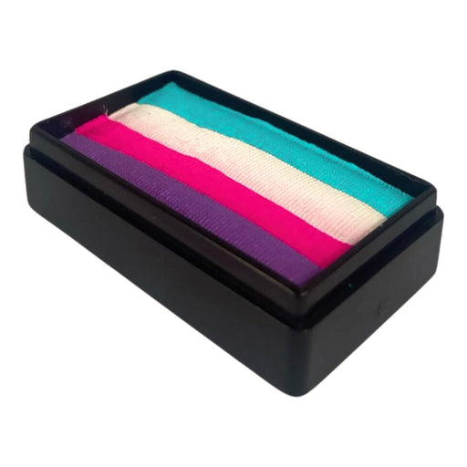 This is the place to find the best selling small split cakes from our top face paint brands! If you are looking for bright and bold small rainbow cakes that are perfect for your butterfly eye masks,  flowers, little critters, and pretty princesses, check out what other face painters choose the most when shopping at Jest Paint! The 1 stroke size cakes can be applied with flat or angle brushes to create amazing designs much quicker than painting in each color one by one! Simply get your brush wet with a little water and load your cake from side to side to pick up all of the colors at once. You can use a 1" brush to pick up all of the colors, or a 3/4" brush to pick up most of them. Once your brush is loaded make smooth clean strokes to create butterfly wings, snakes, tiger stripes and so much more! The possibilities are endless and there are plenty of video tutorials on our You Tube channel that will help you get started with 1 stroke face painting!