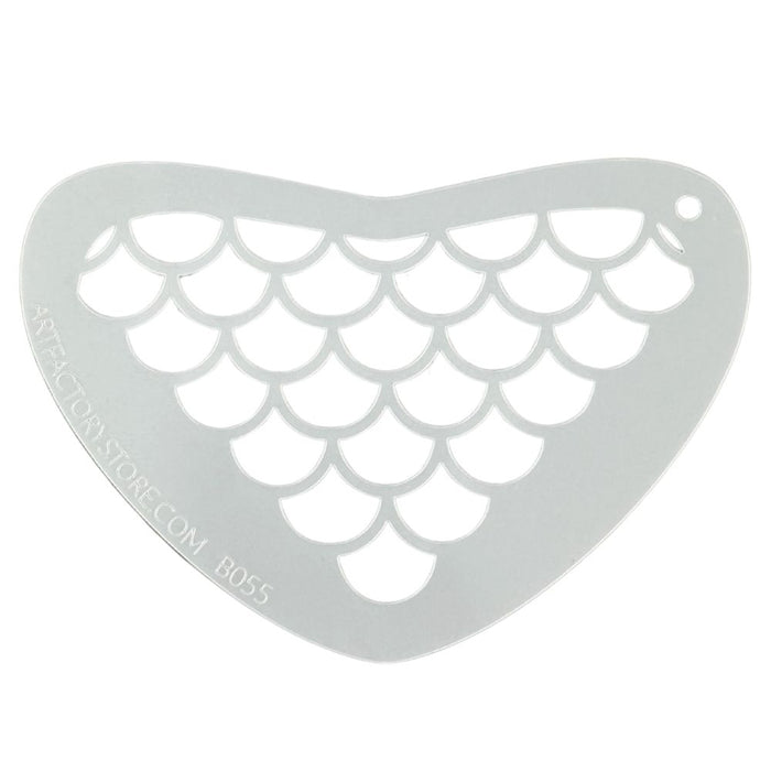 The Boomerang Large Scales Stencil is just what you need to add perfect scales to your full face and body art designs! This will be great on mermaid eye masks, peacock bodies, dragon faces etc. Boomerang stencils were designed by Tal Thompson, designer and owner of the Art Factory, so that they fit on the faces of children and adults. Some designs are perfect for crowns and necklaces, while others are perfect for cheek art. Rotate the stencil around the face to put the designs exactly where you want them. You will be super happy that you have some Boomerang Stencils in your face painting kit because they can add a lot of details and dimension to your face painting designs!