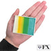 También puedes usar tus pinceles redondos o planos para cargar dos o más colores, dependiendo del ancho del pincel que elijas. Podrías usar la mitad de la pastilla para un fondo degradado y los colores restantes para poner flores, corazones, etc. encima, y todo combinará. Es posible que desees cargar dos o tres colores alternados de la pastilla y aplicarlos alrededor del ojo, y luego rellenar el espacio con los otros 2-3 colores invertidos, para que realmente cambies el orden de los colores para mas variedad. Puedes usar desmaquillantes como Jest Paint Brush and Body Wash, o un producto a base de aceite para descomponer y limpiar esta pintura facial. ¡Que te diviertas! ¡Juega con tus Rainbow Cakes y prueba cosas nuevas para mantenerte alegre pintando!