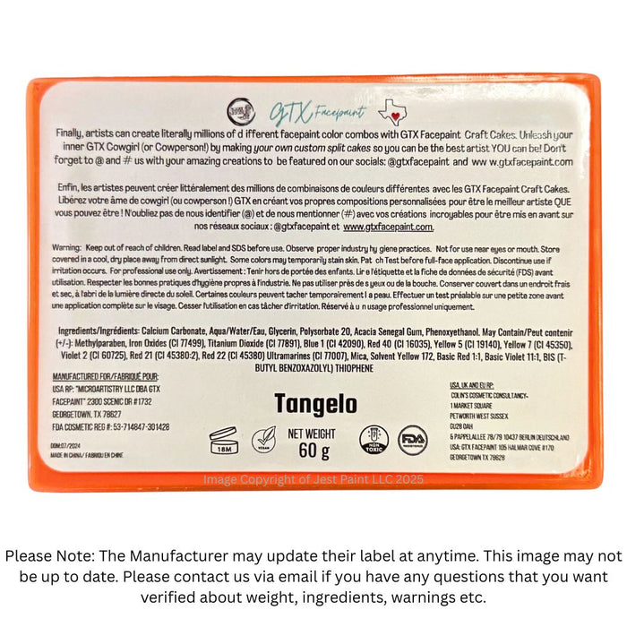 *The information provided below comes straight from the manufacturer, GTX Face Paints. Jest Paint LLC, its affiliates, associates and subsidiaries are not responsible or liable in any way for their claims or the results of following or not the manufacturer's instructions and or claims. This includes but is not limited to claims about the paint consistency, any liability insurance the manufacturer claims to hold, etc.IMPORTANT GTX Face Paint Manufacturer Usage Instructions about Crafting Cakes - Read Before Purchase