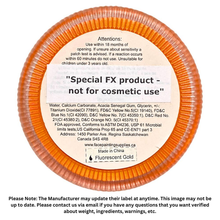 Neon colors are made with pigments that have not been approved by the USA Cosmetic Regulator to be used in cosmetics (the agency has not tested them yet for cosmetic use). According to the manufacturer they have been independently tested and determined safe for cosmetic use by independent labs and by other government agencies in different countries. Following the regulator’s guidelines, they are labeled as a Special FX Product - Prosthetic Paint (for professional use only) - Not a cosmetic Product Apply product to prosthetic appliances, bald caps, clothing, etc. This applies ONLY to the UV/Neon pigments in this product and not to the rest of the pigments, and ONLY in the USA and some parts of Europe.