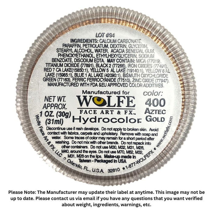 Wolfe FX Face Paint - Metallix Aztec Gold 30gr (400)