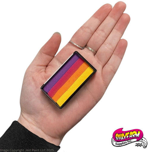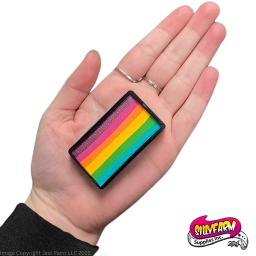 NOTICE: at our store we sell not only face and body paints and tools but also Special FX (SFX) products designed to be used for special effects only. UV/Neon colors that have that notice on their description and/or name indicate that they are not considered a cosmetic product within the USA and Europe. These neon/uv products used to make SILLY FARM RAINBOW CAKES AND ARTY CAKES have yet to bested by the USA FDA for cosmetic safety so manufacturers have labeled them and sell them as a Special FX product to be used on clothing, over prosthetics, etc to create a black light glow effect. This warning does not apply to all countries that we sell to, please look into your own country's regulations for neon face paints. Any Neon/UV paint without that warning has been determined to be cosmetic compliant by the manufacturer. At Jest Paint we don't label these products and are not responsible for manufacturer's claims or label's compliance, but we do our best to make sure that the label information provided to us is available on our website as well. If you have questions please contact the manufacturer directly. Silly Farm is not producing cakes with NEONS in 2024, so we will not be restocking those.