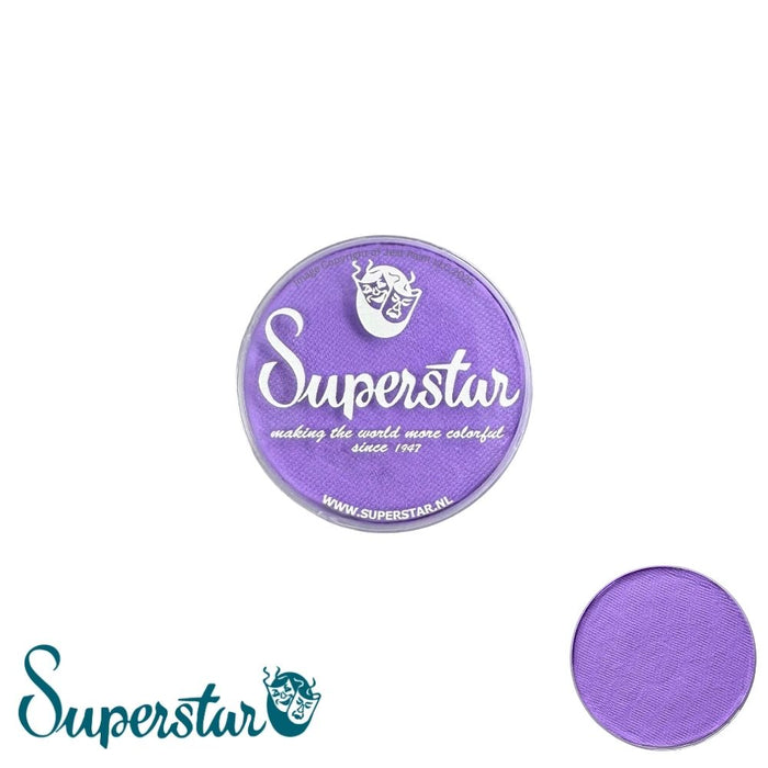 Superstar is a highly pigmented smooth and creamy face paint. They blend easily, dry within 30 seconds on the skin and dry to a smudge free coverage. La la land is a bright punky light purple by Superstar. It goes great with other purples, pink and blues! Create fresh butterflies, pretty kitties, trolls and so much more with this happy color. Test it out in the 16 gram size, or go for the larger 45 gram size if you know that this Superstar color will be useful for tons of your designs!