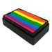 Load a wet flat, angled or filbert brush back and forth over the 1 Stroke cake, using a small amount of water to moisten the paint. Choose a brush size based on how many colors you want to pick up. Hold the cake vertically so that any dripping paint will run down the color of the stripe, and not across the whole rainbow. Put just the tiny tip of your brush back in your water cup if you need to add more water. You want the paint to be fully loaded, appearing wet and shiny, but not drippy. Make sure that your brush is lined up with the correct colors when you reload. Rinse and repeat if colors start to get too mixed.