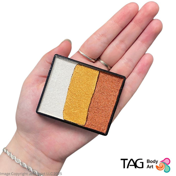 All TAG rainbow cakes are perfect for full face and eye mask designs. You can use small sections of the cake for 1 Stroke brush designs as well. Foxy is perfect for shimmery cheetahs, bears, puppies, Rudolf the Red Nose Reindeer and anything else brown and furry that you can conjure up!