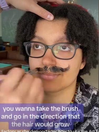 Art Factory Studio's Rake Brush is perfect for painting beards, mustaches, grass, palm leaves, scratches, hash marks, animal fur, unicorn manes, veins in full face butterfly wings and so on.