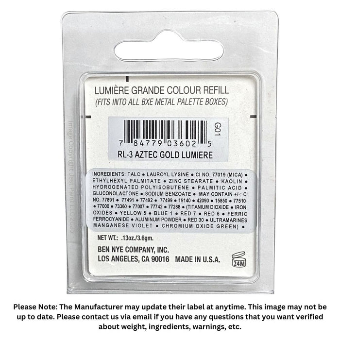 Lumiere powders are labeled with a 24 Month Shelf Life After Opening. Ben Nye Company Inc Los Angeles, California, 90016 Made in the USA.