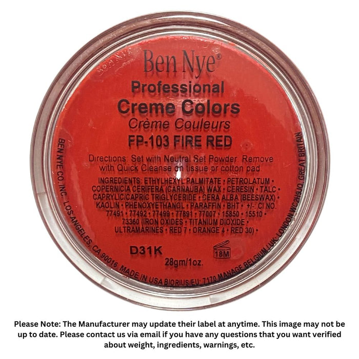 Ben Nye Professional Creme Colors - Fire Red 1 oz