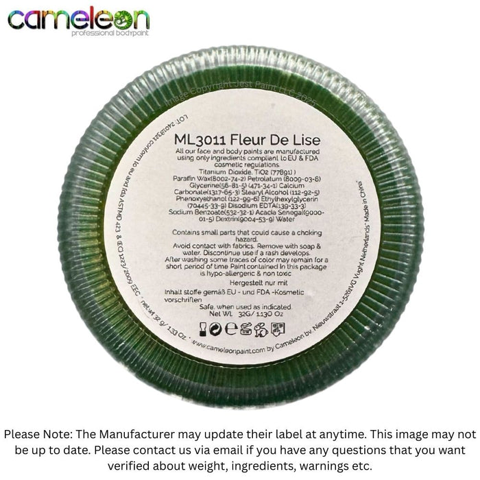 Cameleon Metal face paint is manufactured using only ingredients compliant to EU & FDA cosmetic regulations. Cameleon Professional Body Paint is a well established makeup brand from the Netherlands and is manufactured in China under their professional and artistic guidance. Cameleon face paints are Vegan and Cruelty Free. They contain no perfumes or parabens.