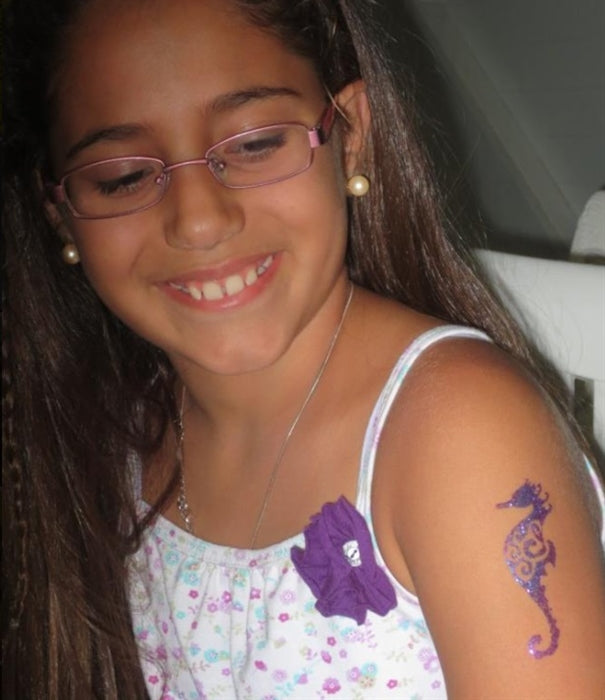This under the sea stencil is super cute and is perfect for little kids, teens and adults! The stencil is approximately 3.75 x 2.75 inches. When ordering this, you will receive one glitter tattoo stencil of an adorable sea dragon with an intricate swirly pattern on its body(view image for reference)! This stencil is perfect for sea creature lovers, birthday parties and more! The best part about these glitter tattoo stencils is you can choose whatever color glitters you want; making this stencil great for a thousand different things, whether it be rainbow colored, multicolored or a simple black, there is no limit to your creativity when you buy this stencil!