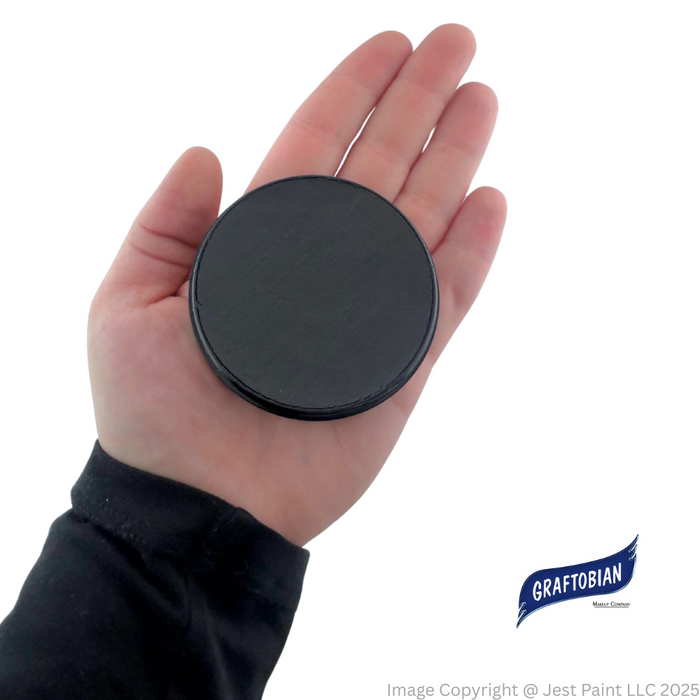 When ordering this product, you will receive one glycerin-based face paint in the color Raven Black. The paint container is 2 1/2 inches in diameter and 5/8 inches tall. We love this paint because it is lightweight, opaque and smudge proof!