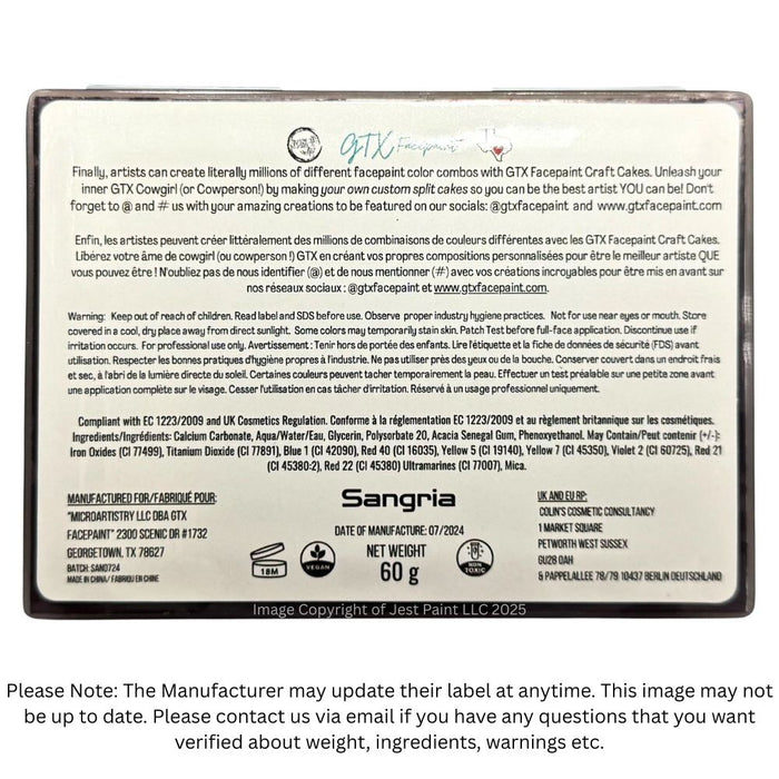 GTX Face Paint | Crafting Cake - Regular Sangria (Deep Maroon) 60gr