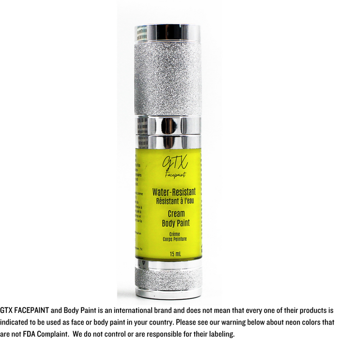 GTX Face Paint | Silicone Based Water Resistant Cream - Neon Moon Yellow 15ml Pump Bottle (SFX - Non Cosmetic)