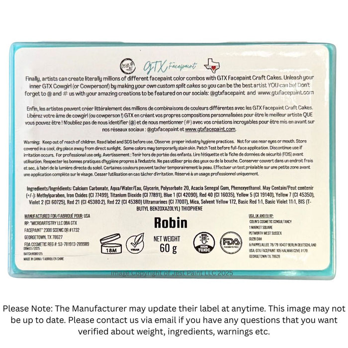 *The information provided below comes straight from the manufacturer, GTX Face Paints. Jest Paint LLC, its affiliates, associates and subsidiaries are not responsible or liable in any way for their claims or the results of following or not the manufacturer's instructions and or claims. This includes but is not limited to claims about the paint consistency, any liability insurance the manufacturer claims to hold, etc.