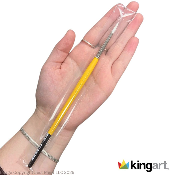This KingArt face painting brush is ideal for making small and fine details. These face painting brushes are ideal for outlining, detailing, line work and tear drops. The 7950 Series brushes are some of the most popular face painting brushes in the industry! They have white nylon bristles which keep their shape well when loaded with face paint, and they work well for swirls, tear drops and line work.