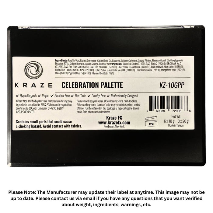 Kraze FX Face Paints | CELEBRATION PALETTE - Six 10gr 1 Stroke Split Cakes and Three 20gr Rainbow Cakes