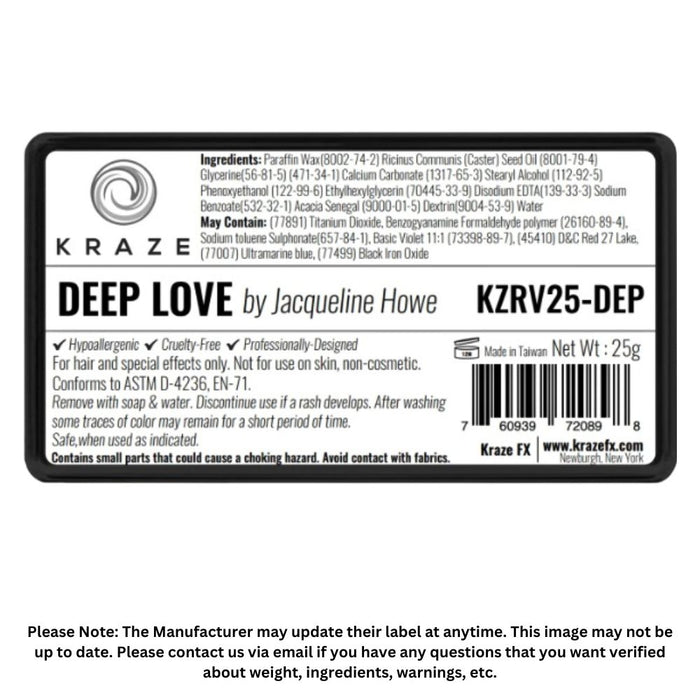 Kraze FX Paints | Domed 1 Stroke Cake - JACQUELINE HOWE COLLECTION - Deep Love 25gr (SFX - Non Cosmetic)