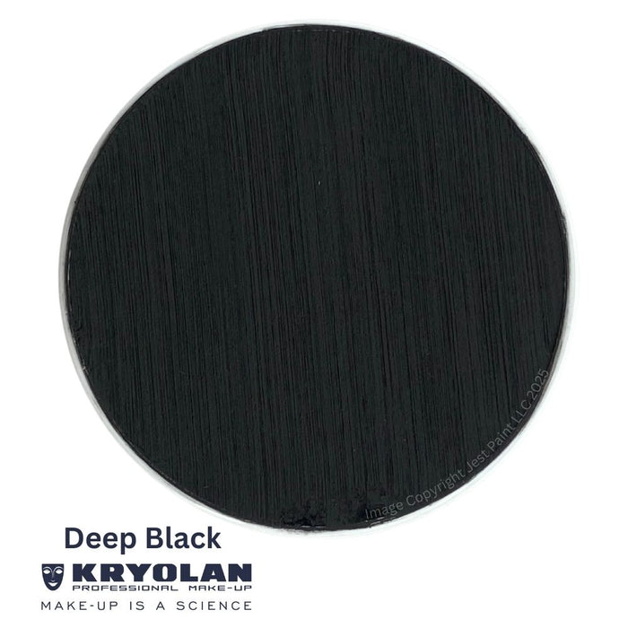 Kryolan Aquacolor's New Deep Black face paint is a much stronger black without any hints of blues or greens.  Is great for creating smooth, soft and even bases, specially great when painting super heroes and black animals like cats and panthers. Kryolan face paints are very smooth and blendable, which makes them the perfect choice for laying down a base color since it creates a solid coverage that is still flexible and moves with the skin preventing cracks from forming once the paint is dry. It is actually so soft and bendable that you might want to set it with a setting powder so that it does not smudge or transfer. The soft texture also makes it a perfect choice for color blending. Because of the nature of its ingredients we do not recommend Kryolan Aquacolor face paints for fine line work since it is hard to obtain crisp lines with it.