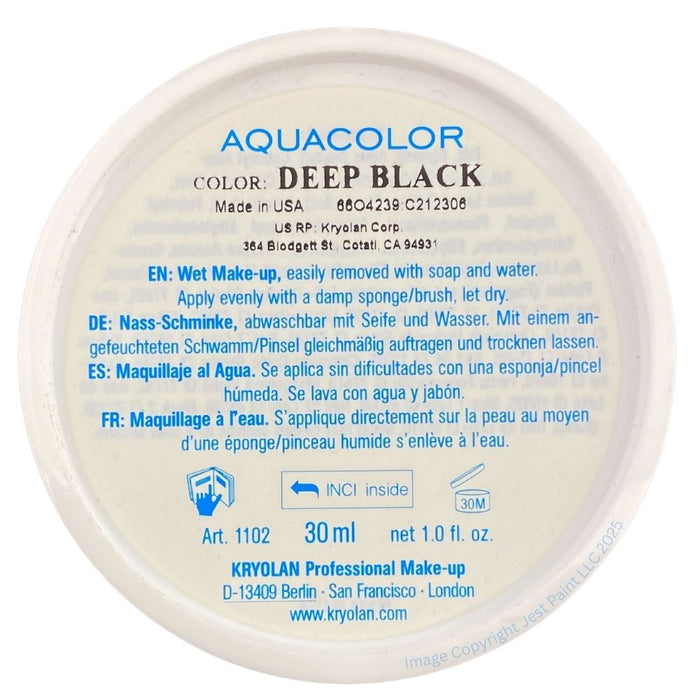 Kryolan Face Paint Aquacolor - NEW Deep Black - 30ml