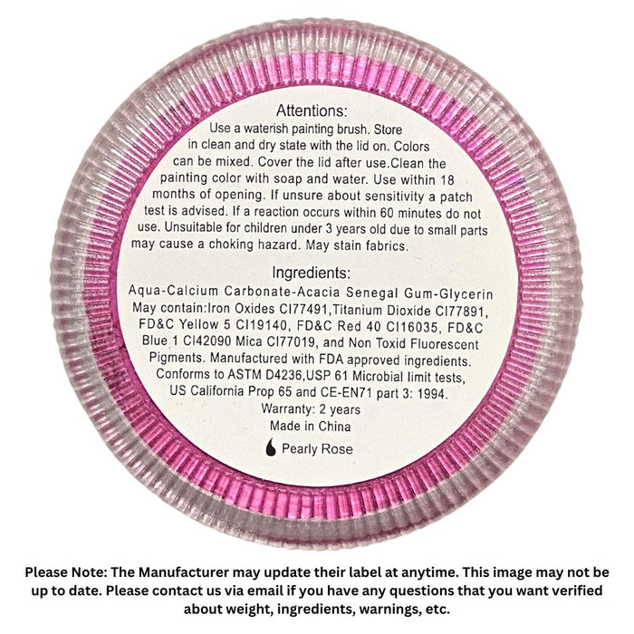Los colores neón, como en muchas otras marcas, están hechos con pigmentos que no han sido aprobados por la FDA para su uso cosmético (la FDA aún no los ha probado para uso cosmético), pero se han probado de forma independiente y se ha determinado que son seguros para uso cosmético por laboratorios independientes. Siguiendo las pautas de la FDA, estos colores sólo están destinados a usarse como un producto SPECIAL FX para ser aplicado a prótesis, ropa, etc. Dado que este producto fue diseñado principalmente para venderse en Canadá, no tiene dicha advertencia en su etiqueta, pero la advertencia aún se aplica a clientes y usuarios con sede en USA.