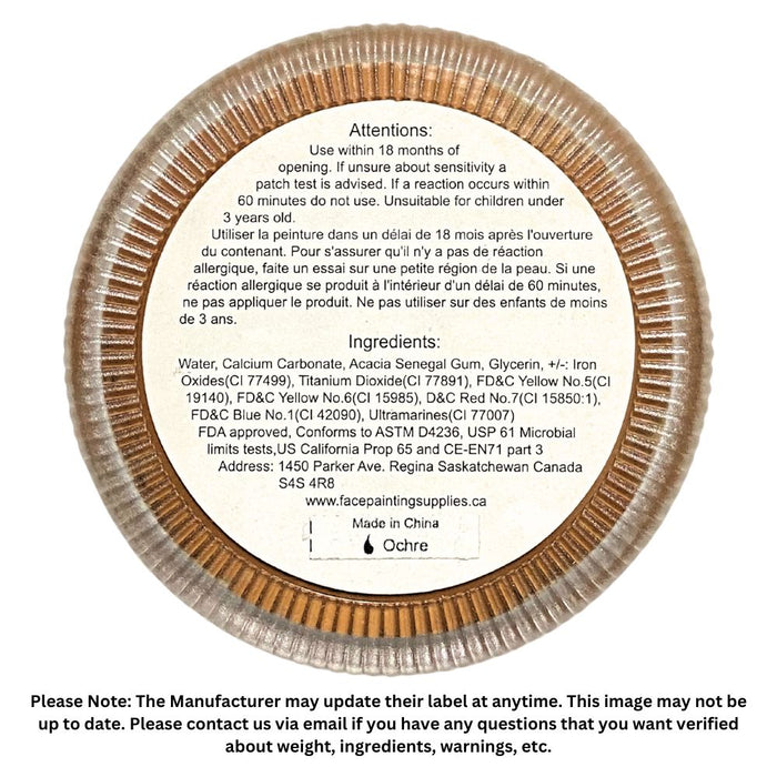 Use a wet painting brush. Store in clean and dry location with the lid on. Colors can be mixed. Cover the cake with the lid after use (once all added water has dried out). Remove from the skin with soap and water. Use within 18 months of opening. If unsure about sensitivity a patch test is advised. If a reaction occurs within 60 minutes do not use. Unsuitable for children under 3 years old due to small parts that may cause choking. May stain fabrics.