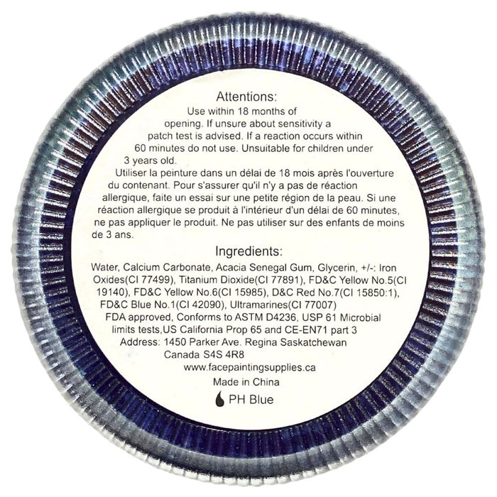 Use a wet painting brush. Store in clean and dry location with the lid on. Colors can be mixed. Cover the cake with the lid after use (once all added water has dried out). Remove from the skin with soap and water. Use within 18 months of opening. If unsure about sensitivity a patch test is advised. If a reaction occurs within 60 minutes do not use. Unsuitable for children under 3 years old due to small parts that may cause choking. May stain fabrics.