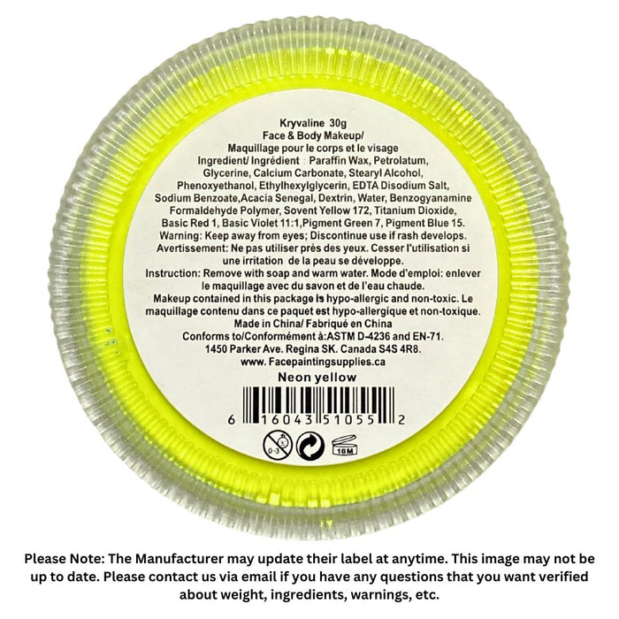 Kryvaline Paint (Regular Line) - Neon Yellow 30gr (SFX - Non Cosmetic)