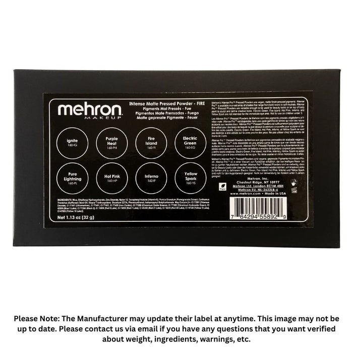 Mehron | INtense Pressed Powder Pigments - Coated Card Stock Magnetic Case - 8 Color FIRE Palette