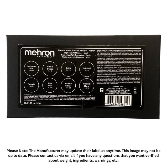The magnetic INtense Wind Palette includes the colors: Hurricane Blue, Island Blue, Palm, Turbulent, Tornado, Solar Wind, Ocean Breeze, and Tropical Storm