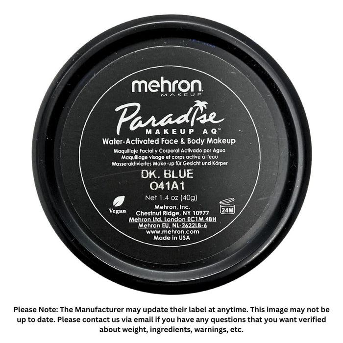 Mehron Paradise Face Paint es ideal para crear bases y combinar colores. Paradise Dark Blue es ideal para diseñar la máscara de tu superhéroe favorito y tus diseños acuáticos.