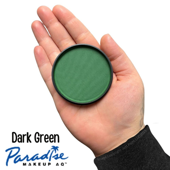 Mehron Paradise Face Paint is great for creating bases and blending colors together. Paradise Dark Green is a medium dark forest green. Great for leaves, Monsters and lizard faces!