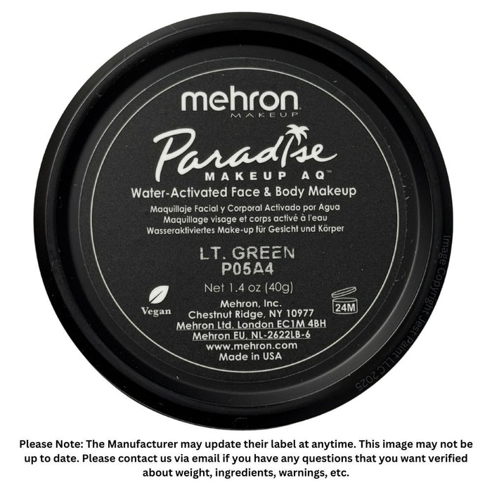 Mehron Paradise Face Paint es ideal para crear bases y combinar colores. Paradise Light Green es ideal para hojas, monstruos y lagartos.