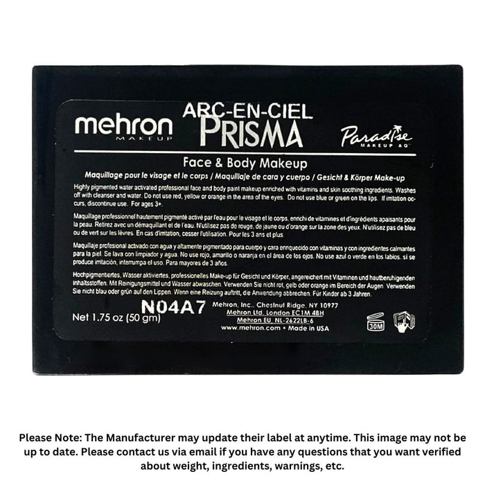 Paradise PRISMA Rainbow Face Paint Cake By Mehron | Arc-En-Ciel 50gr