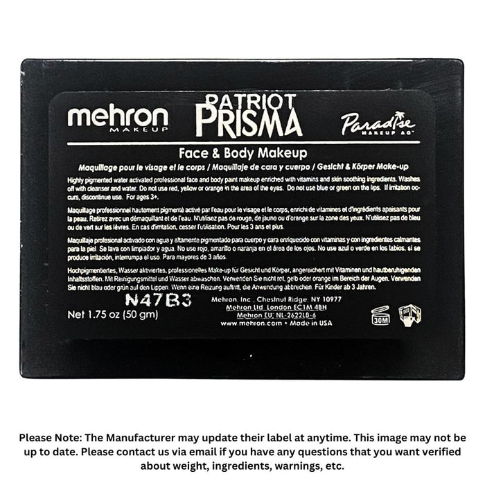 Paradise PRISMA Rainbow Face Paint Cake By Mehron | Patriot - 50gr