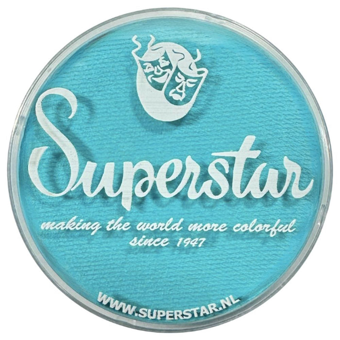 Superstar is a highly pigmented smooth and creamy face paint. They blend easily, dry within 30 seconds on the skin and dry to a smudge free coverage. Superstar Henry Jr. Blue 100 is a very pigmented light blue that looks great in conjunctions with darker blues, greens and purples. It is perfect for frozen queens, mermaids, unicorns, certain super heroes, wild cats, and sports designs. Go pro with the large size of Superstar Henry Jr. Blue in the 45 gram container.