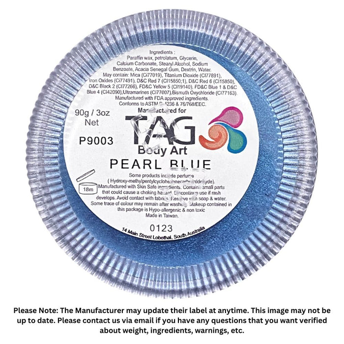 Todos los colores perlados están hechos con ingredientes que cumplen con las normas FDA y son hipoalergénicos. Estos productos TAG se hacen en Taiwán bajo la dirección de TAG Body Art en Australia. No contienen parabenos ni lanolina para reducir el riesgo de reacciones alérgicas. Son veganos y no se han probado en animales.