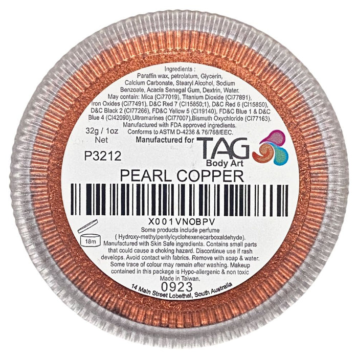 All pearl colors are made with FDA compliant ingredients and are hypoallergenic. TAG cakes are made in Taiwan under the direction of TAG Body Art in Australia. They contain no parabens or lanolin to reduce the risk of allergic reactions. TAG cakes are vegan and they are not tested on animals.