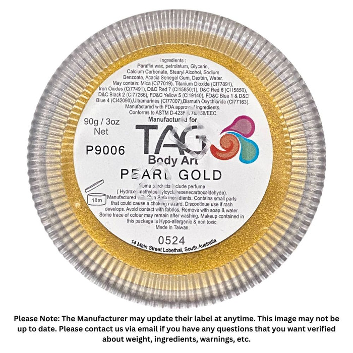 All pearl colors are made with FDA compliant ingredients and are hypoallergenic. TAG cakes are made in Taiwan under the direction of TAG Body Art in Australia. They contain no parabens or lanolin to reduce the risk of allergic reactions. TAG cakes are vegan and they are not tested on animals.