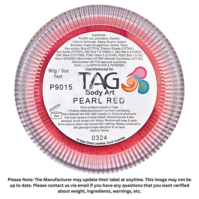 All pearl colors are made with FDA compliant ingredients and are hypoallergenic. TAG cakes are made in Taiwan under the direction of TAG Body Art in Australia. They contain no parabens or lanolin to reduce the risk of allergic reactions. TAG cakes are vegan and they are not tested on animals.