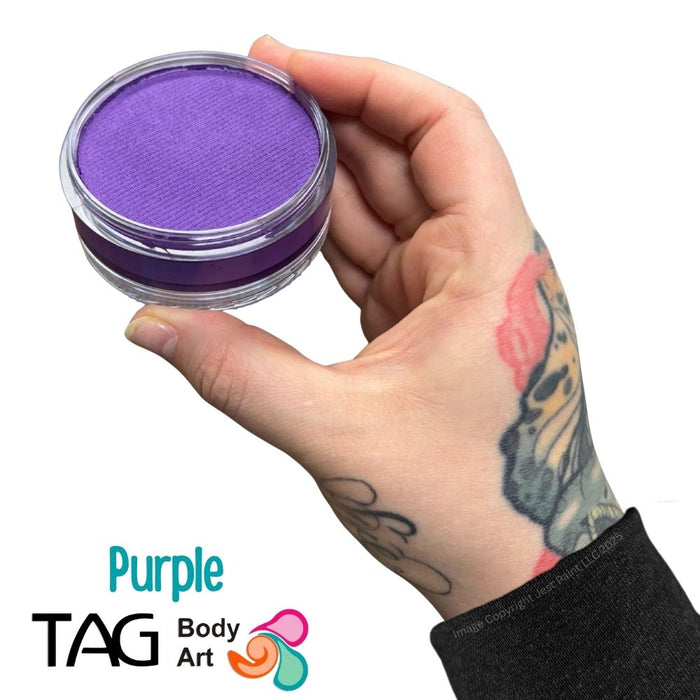TAG Body Art Purple face paint is perfect for creating even bases and for obtaining perfect strokes when using a fine brush for your line work. TAG Face Paints are great for beginner and professional face painters as well as the professional cosplayer and parents who need a very good quality but affordable face painting product for their costume, face painting kit, party or just for fun. TAG Body Art face paints bright and highly pigmented colors make every design stand out. TAG Purple is a beautiful bright and bold purple, great for girl designs. It can also work as a substitute for black, providing a brighter but equally as bold outline to your designs.