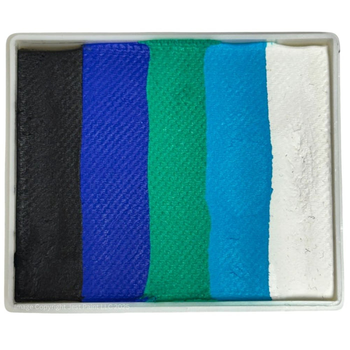 All TAG rainbow cakes are perfect for full face and eye mask designs. You can use small sections of the cake for 1 Stroke brush designs as well. The Water Dragon cake is a teal and blue combo with a dark and light edge. It is great for mermaids, frozen masks, dragons, sea creatures, a any thing cool and blue!